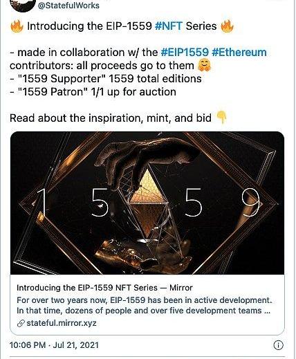 3.StatefulWorks推出EIP-1559纪念NFT,以奖励开发人员。