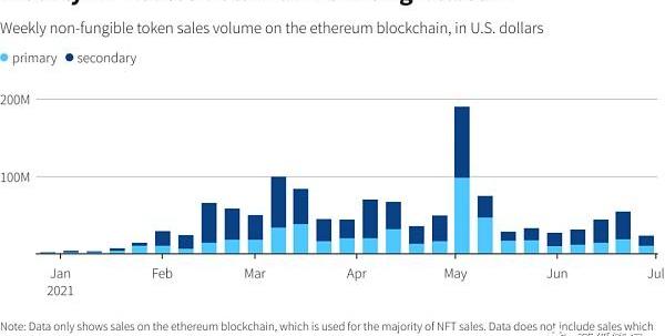 在2021年5月下旬之前,由于整体市场和DeFi的数据亮眼,NFT的发展显得没那么突出。不过,根据数据来看,2021年上半年,NFT的整体交易规模突破25亿美元。