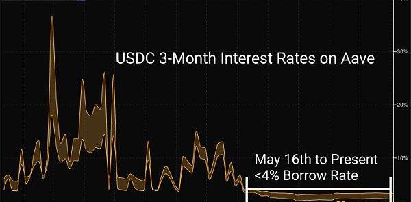 随着对链上杠杆需求的放缓,主要借贷市场的收益率开始下降。在收益率下降的过程中,出现了低波动性利率。这些低利率并不全是坏事,他们让稳定币的质押者和卖空者都能获得廉价的借贷资金,这在牛市期间几乎是闻所未闻的。只要流动性保持强劲且借贷需求减少,借贷市场的收益率将继续保持低位。这反映了我们在对DeFi现状的分析中探讨的利用率和收益率之间的关系。