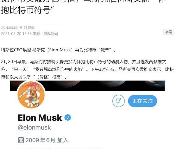 5.比特币突破万亿市值,马斯克推特新头像“怀抱比特币符号”,叶映荷