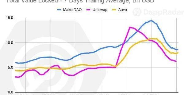 可以肯定地说,加密崩溃对业内最新产品的影响最大,尤其是BSC上的dapp。其原因可能在于,贷款协议急于承担更高的风险,以吸引更多的用户。另一方面,以太坊的DeFidapp被证明对加密货币崩溃更有弹性,这表明DeFi生态系统正在变得成熟。毕竟,以太坊上的DeFi生态系统已经面临过至少一次行业崩溃,但他们并没有让用户失望,并继续以预期的方式工作。