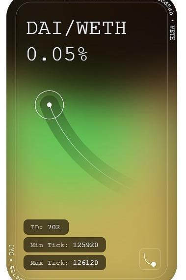 由于UniswapV2采用整体资金池模式,LPToken是标准的ERC20代币。但在V3中,每个LP基于不同的价格区间创造流动性,因此提供的流动性都采用ERC721代币作为权证,Uniswap也会为每一位流动性提供者发放定制化的NFT卡片。