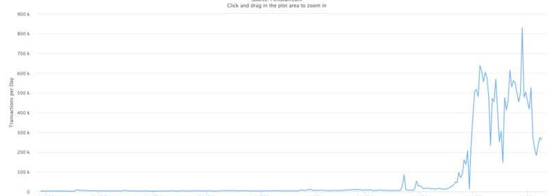 每日交易笔数方面,4月9日Fantom网络的每日交易笔数为12278笔,6月9日数据为261804笔,区间整体增幅为2032.3%;此外,区间高点数据为5月29日的829036笔,6月9日数据较区间高点的降幅约为68.4%。?