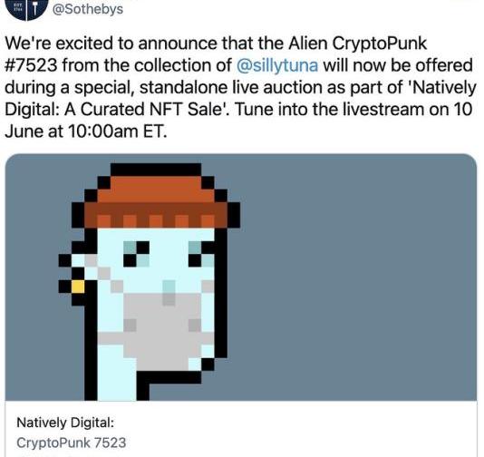 苏富比宣布,将“特殊、独立”拍卖CryptoPunk#7530。此前该作品曾作为“NativelyDigital”活动的一部分宣布。