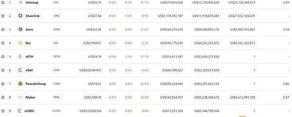 DeFi排名前十锁仓量数据来源:DeFiPluse