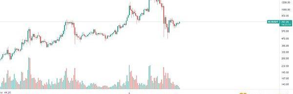 短期酝酿向上反弹,上方压力800美金,突破站稳下一目标900美金,大方向延续震荡向上走势。