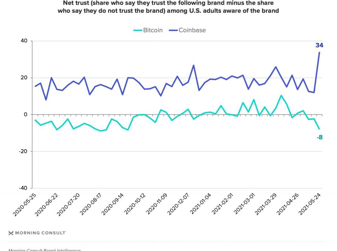 调查显示,随着对比特币的信任度下降,对Coinbase的信任度却达到了新高。