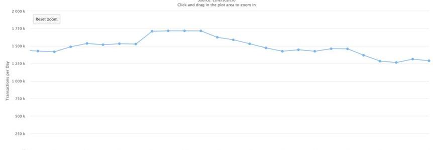 PAData5月26日消息,受到以太坊链上交易次数稳中有降的影响,今日以太坊Gas价格也处于较低水平。根据Etherscan的监测,5月25日以太坊链上交易次数约为128.94万次,较7日前减少了约9.52%,较5月9日创造的本月单日交易量最高值下降了约24.89%。