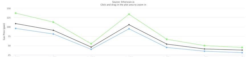 根据北京时间16:00的数据,如果用户想要以较低的速度打包自己的交易,仅需支付31gwei;如果想要以平均速度打包交易,需要支付40gwei的Gas价格;如果想要快速地打包交易,需要支付47gwei。