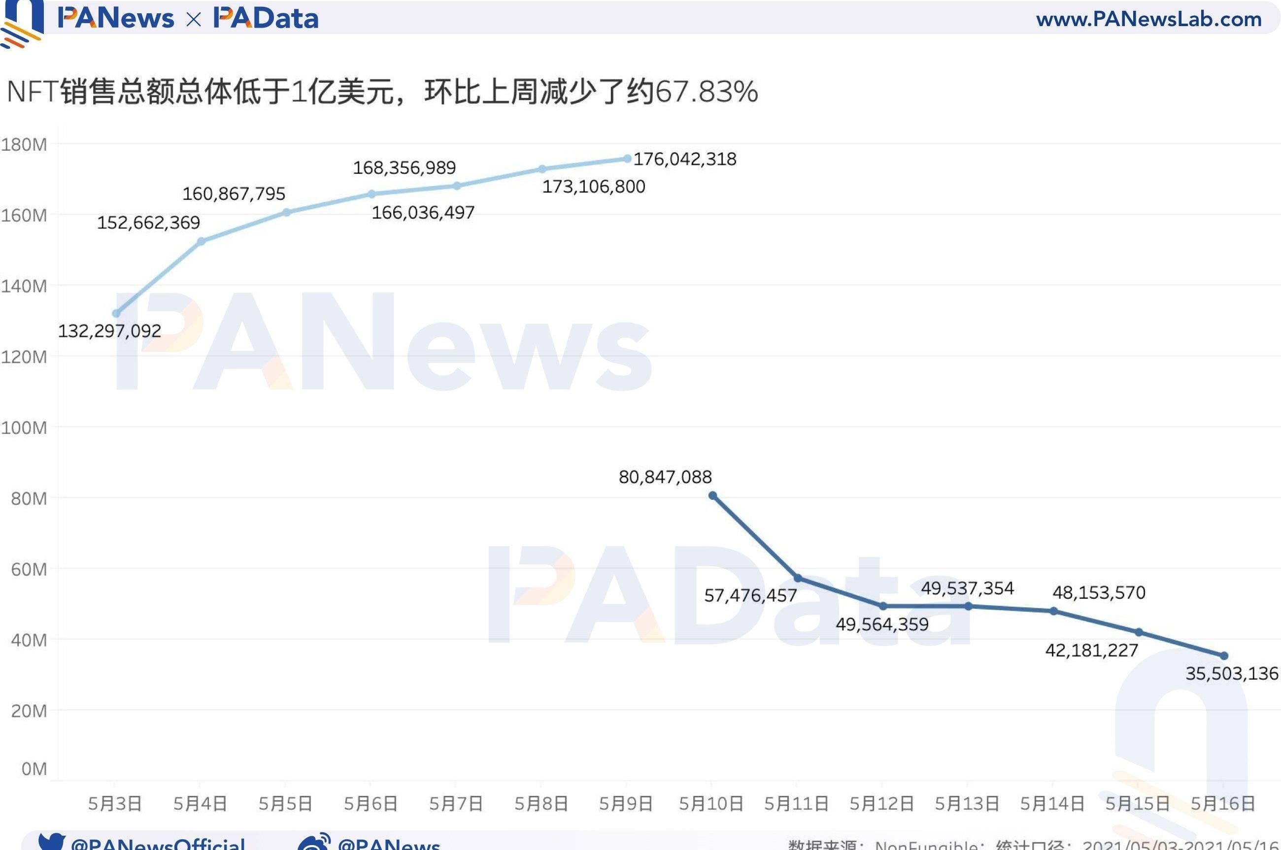 NFT销售总额快速下降,二次交易总额周环比增长约74.76%