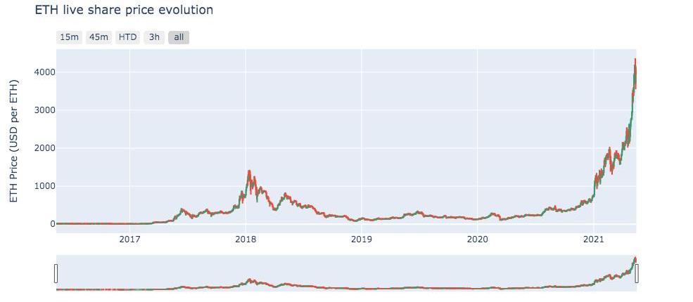 正如加密货币价值追踪器Coinmarketcap所指出的那样,以太坊在5月13日的市值约为4350亿美元。目前,以太坊的价值刚刚约为13%,而交易量却上升了52%。虽然以太坊的涨势始于接近一年前最远的比特币交易惯例,但其个人牛市始于今年1月左右。