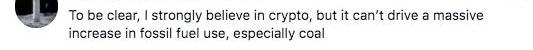 这是他连续第二天因能耗问题对比特币提出质疑。美东时间本周三美股盘后,特斯拉CEO马斯克突然在社交媒体宣布:“特斯拉已经叫停用比特币购车。我们担心比特币挖矿和交易导致化石燃料、尤其是煤炭的耗用飞速增长,煤炭是所有化石燃料排放中影响最恶劣的。”