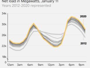 然而,与天然气或核能这样更昂贵的基本负荷电力相比,太阳能和风能都存在一个主要缺陷:间歇性。在能源行业中,这导致了所谓的“鸭子曲线”。