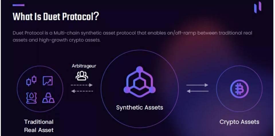 DuetProtocol是一种合成资产协议。所谓合成资产,就是在数字世界里复制现实世界的资产,实时映射实体资产的价格波动和投资回报,实现价值在数字互联网上的传递,切分和储藏。值得一提的是,Duet是全球首个混合铸造机制的链上合成资产协议,支持无需依赖中心化托管的万亿级的链外资产平行映射。