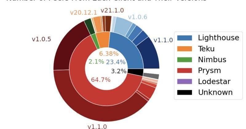 LeonardoBautista-Gomez早在一月的时候公布了一份数据分析,结果现实Prysm节点占网络的65%,此次事件也显示Prysm验证者在今天占了大多数。