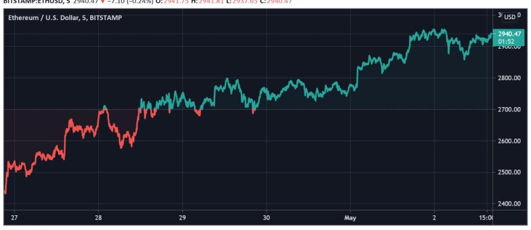 目前以太坊的价格约为2,900美元,在过去的一年里上涨了900%以上。