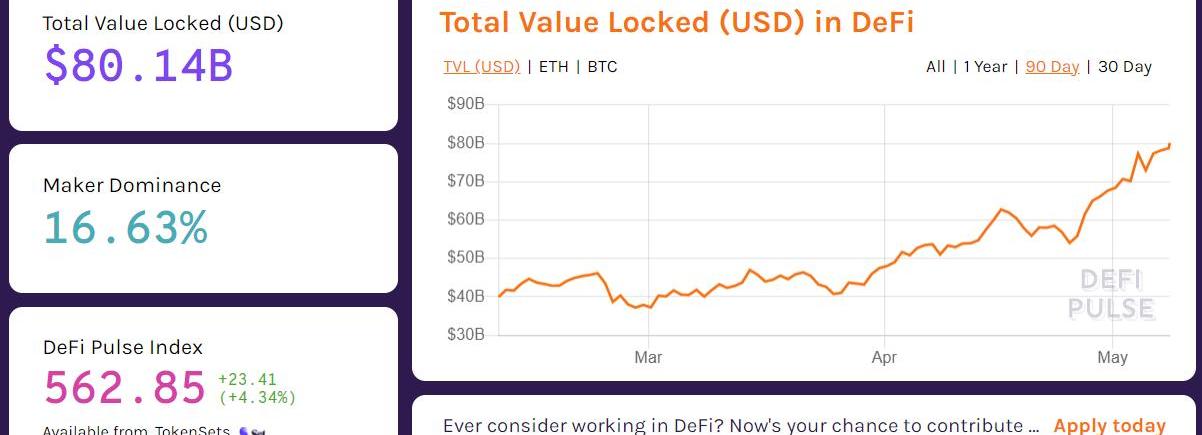根据DeFiPulse数据,目前TVL突破801亿美元,再创新高。自本月初684亿美元成长17.1%,与去年同期的0.96亿美元相比,更已经大增超过8倍。