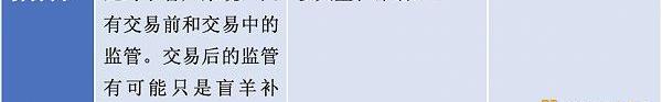 交易前、交易中、交易后都需要监管:交易前需要验证参与客户以及确定资产,交易中需要维持交易公平性并实时监管,交易后需要更详尽的反机制,并且满足交易可以回滚。这三阶段的监管机制都不同。一些数字货币,有Token就代表资产确定;但是一些新型系统处理机制不同,还需要验证资产来源是否可靠或是合法。