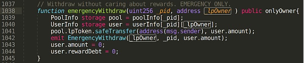该emergencyWithdraw()函数是一个基于正确的emergencyWithdraw()函数。因此就算审视合约者不恶意揣测,也很难说项目方不是恶意改写,并添加了该漏洞。