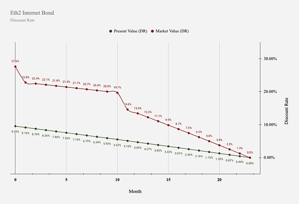 因此,我们可以从把Eth2互联网债券作为一种递延奖励协议入手。需要注意的是,递延利息债券是一种债务协议,其应计利息仅在到期时全额支付。递延利息工具通常以较高的折扣发行和交易,以补偿质押者在此期间的延迟收益以及缺乏流动性的问题。因此,资产的价值最终会在到期时与面值趋同。