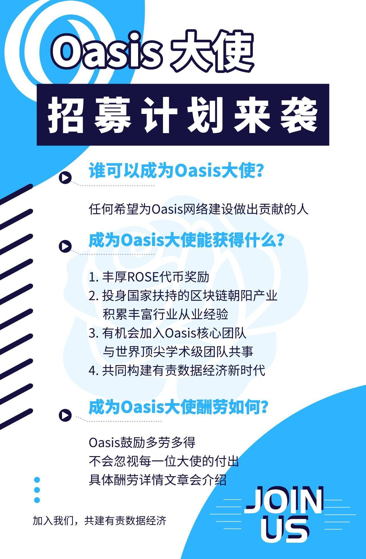 随着Oasis社区生态进一步的繁荣发展,Oasis社区快速发展壮大。为了更好的发展社区并且回馈为社区发展做出贡献的成员,Oasis推出了完整、系统的大使计划,奖励高达20000ROSE代币。
