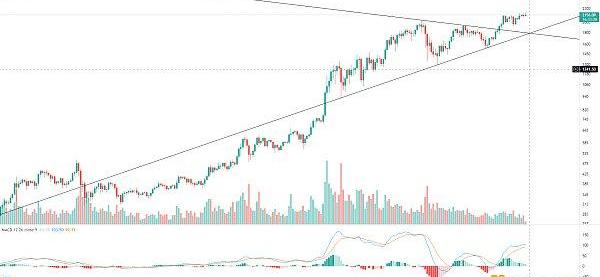 整理后有望继续向上再创新高,下一阻力2300美金,有耐心的持有。