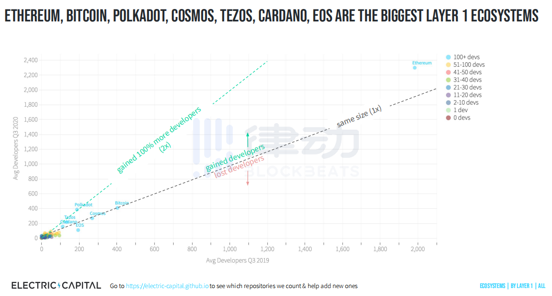 1. 自 2019 年 10 月以来,其他生态系统正在失去开发者,不少开发者趋向于集中在大型生态中。
