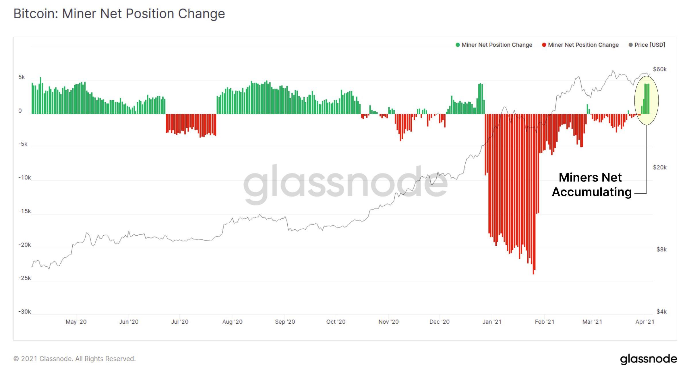 上周,我们展示了长期持币者在过去三个月内放缓减持旧币的情况,这一趋势一直延续到本周。此外,矿工也加入了进来,矿工净头寸变化指标呈现绿色,这表明矿工选择持有了新挖到的币。