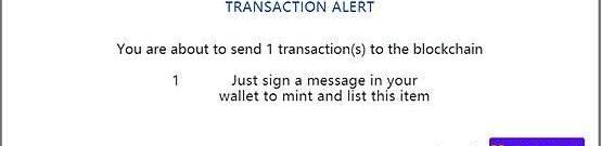 六、填写完成后点击LISTTHISITEM。系统显示你将要发送1笔交易到区块链,只需要在钱包里签名一条消息即可铸造并列出该商品。