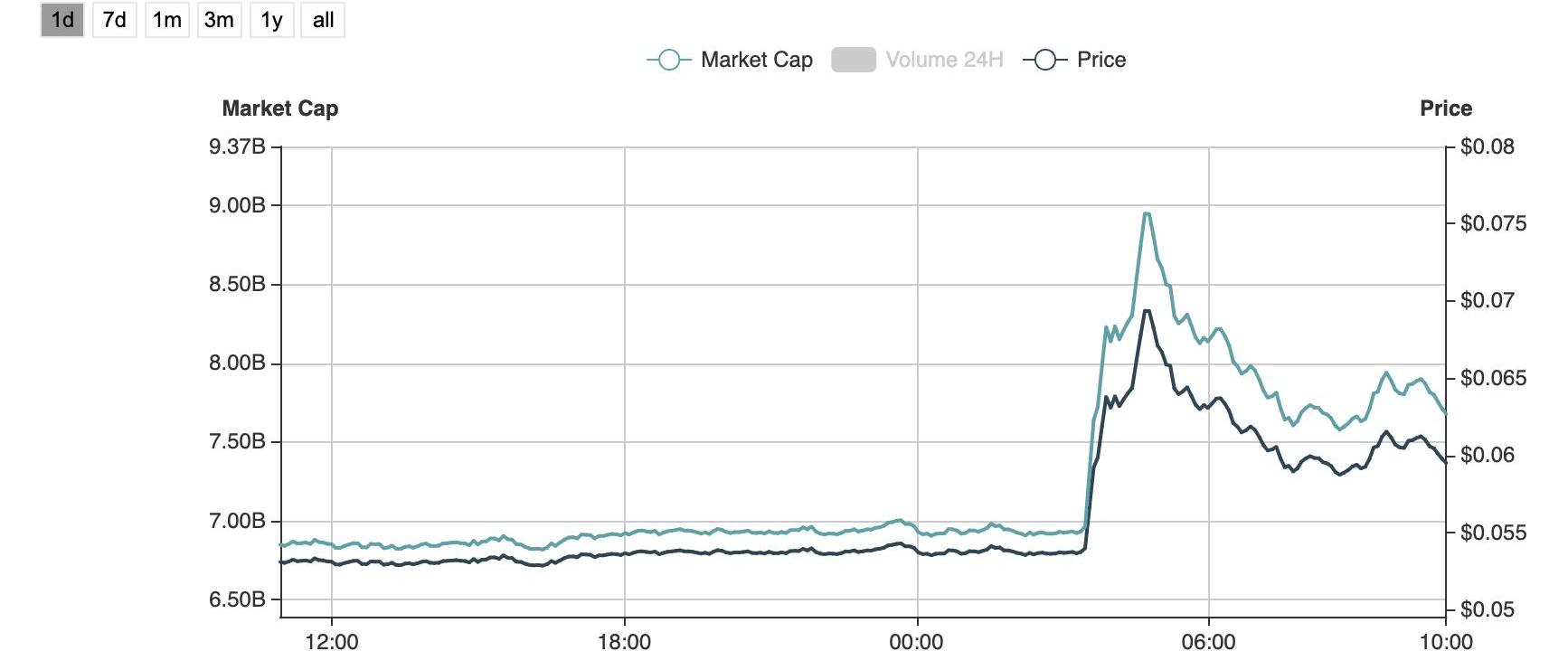 根据比推数据,在马斯克发布推文后,狗狗币的价格飙升。一举突破0.06美元,截至目前其价格为0.0603美元,此次大涨中其价格一度升至0.069美元,然后才小幅下跌。