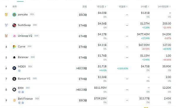 交易量排名前十的DEX排名来源:DeFibox
