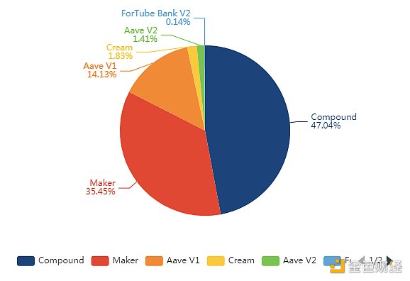 DeFi借贷平台借款占比,金色财经制图, 数据来源:Debank