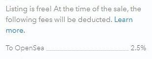 无论选择哪一种,OpenSea都会在成交的时候抽取2.5%的手续费: