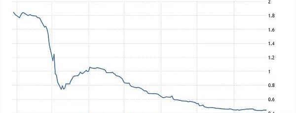 上图为2020年以美元为基准的LIBOR数据,我们可以看到在年初利率最高时只达到了年化1.8%左右,随后下降到0.5%以下。