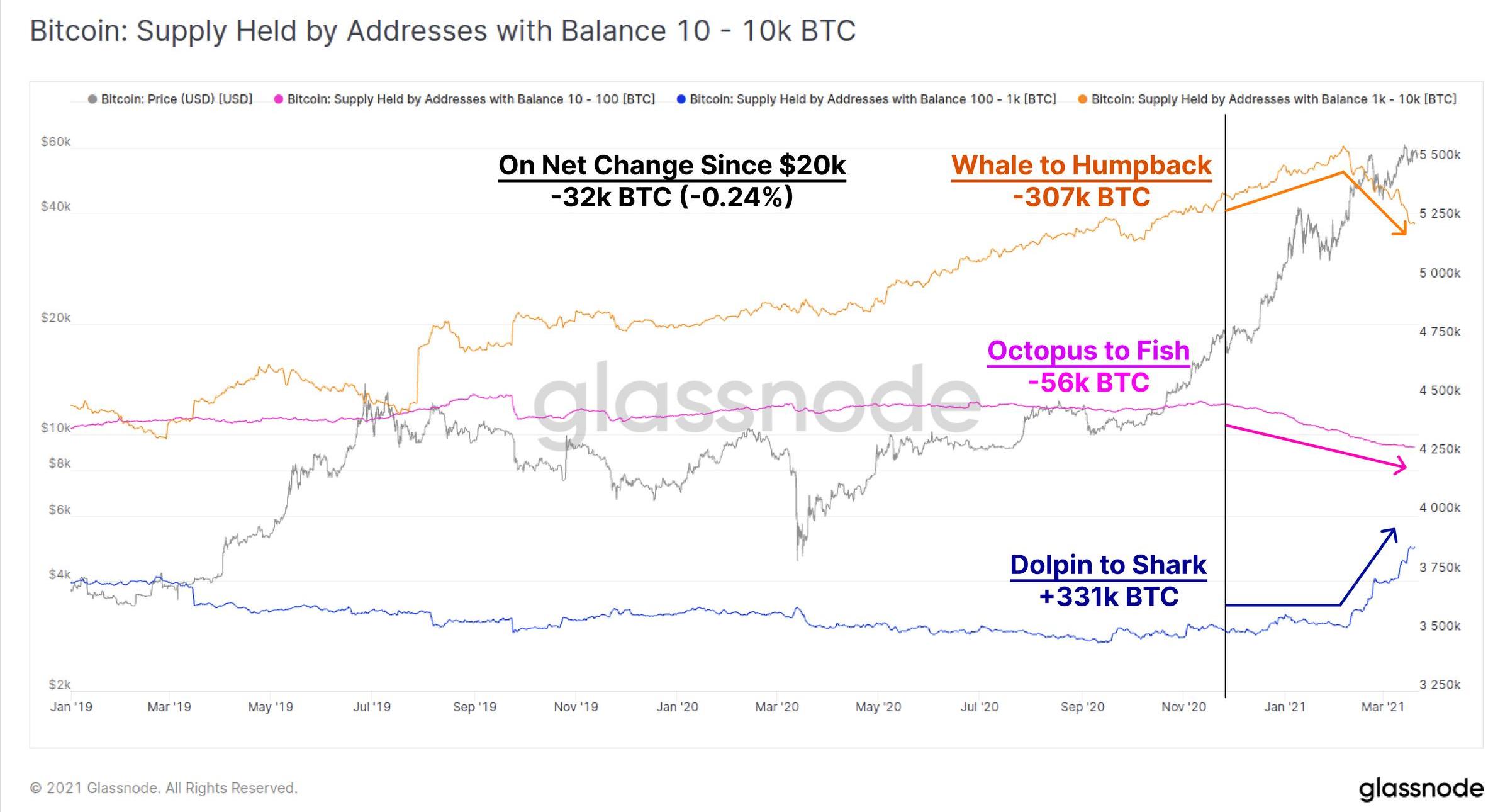 海豚和鲨鱼的比特币持有量增加了33.1万BTC;