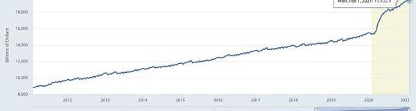 在过去的12个月里,超过20%的美元流通量是凭空印出来的。