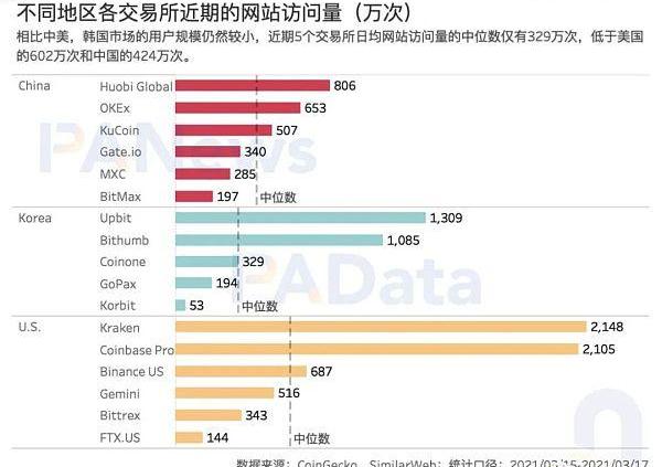 PAData根据CoinGecko为交易所划分的所属地区,以及交易所的地区市场声量和主要用户所属地区,选择了中美韩三国共17个交易所进行观察,深度分析了近期交易数据后发现: