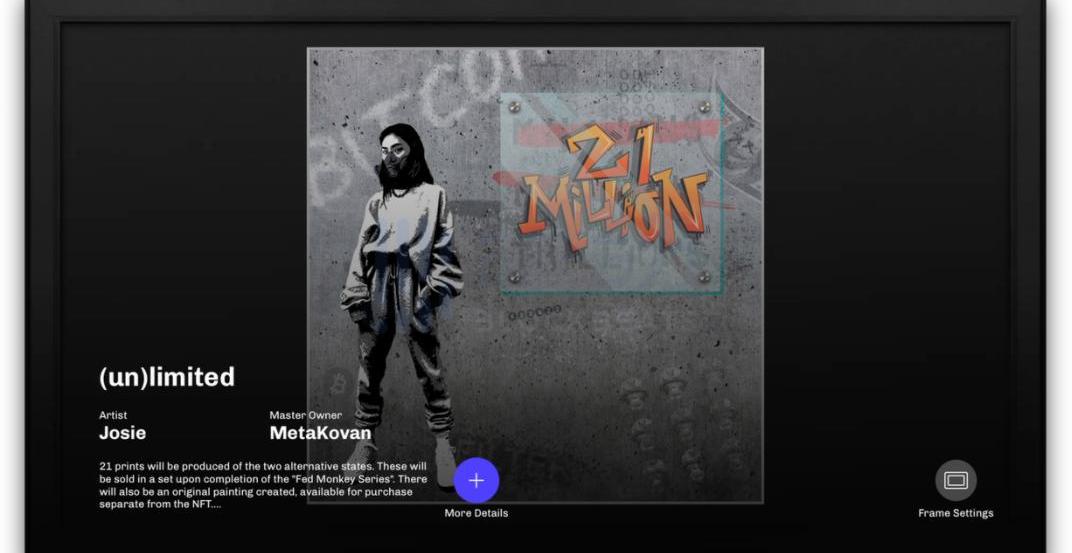 电子屏幕是将加密艺术带入日常生活的好方法。这是一种更简单的选择,你可以使用电子相册来将你的收藏展示出来,并用它们装点你的生活空间,经济实惠。除此之外,还有一些高质量的电子屏幕,如InfiniteObjects和Meural,可以更加精美地展示你收藏的NFT。自去年以来,电视,如AppleTV等,也受到越来越多的加密艺术收藏家的欢迎。