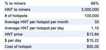 如果我们假设网络到2021年将增长到100,000个热点,该怎么办?则平均热点每天将赚取1.1HNT。假设HNT价格持平,新的热点将在大约6周内收回成本。