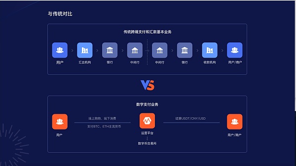 HyperPay推出的HPay系统,将当前市面中已有的加密资产支付产品进行了改良,较传统跨境支付和汇款基础业务省却了繁琐的中间环节,节约资金周转时间成本,提供受信的三方背书交易环境: