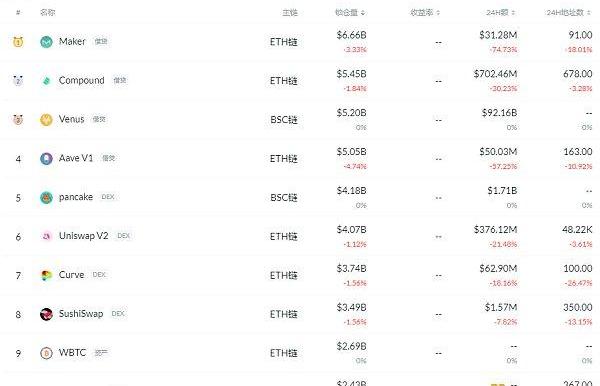 DeFi项目锁定资产前十排名及锁仓量,数据来源:Debank
