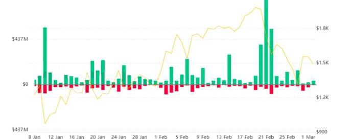 上图显示,随着以太坊触及历史新高,该指标在2月20日达到39%的峰值。然而,在整个回调过程中,它一直保持在16%以上。该数据表明,专业交易员对以太坊的价格潜力仍然充满信心。