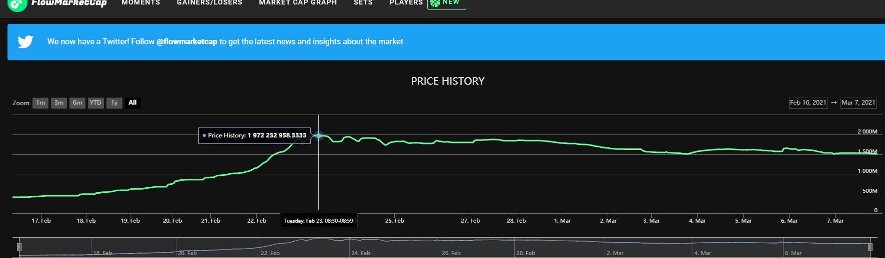 币本位的NFT商品,价格主要受币价和市场周期的影响,美元本位则不需要考虑币价的波动。笔者于1月底注册NBATopShot,现后总共投入1万美元,用于抢包和购卡。随着NBATopShot总销售额从3千万美元,一路直飙突破5千万美元、1亿美元、1.5亿美元、2亿美元关口,个人藏品的估值也水涨船高,最高时投资回报率达到140%。转折点是在2月23日,记得那天之后,每天看着估值在缩水,心里很不是滋味。最阴暗的是3月7日,这一天个人藏品估值的利润首次由正转负。