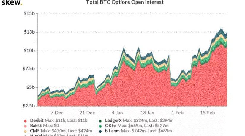 在衍生品市场,比特币期权的持仓量正在缓慢回升。此前,比特币期权的持仓量从周日创下的约130亿美元的历史高点小幅下降。加密支付平台Wirex交易主管YvesRenno表示:“如今比特币市场相当平静。”“在几天前遭遇严重的合约清算之后,衍生品市场正在恢复正常。价值近60亿美元的长期期货合约被清算。目前市场正试图盘整5万美元以上的价格。”“交易者今天仍然很谨慎,”Renno补充道。“是‘等着瞧’。”