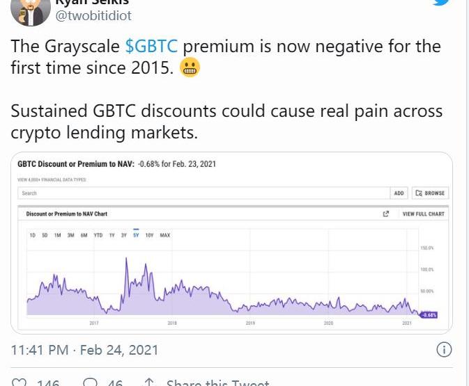 GrayscaleBitcoinTrust多年来首次以“折扣价”进行交易。一些分析师担心这对市场而言是件坏事,也有人认为并不需要那么担心。