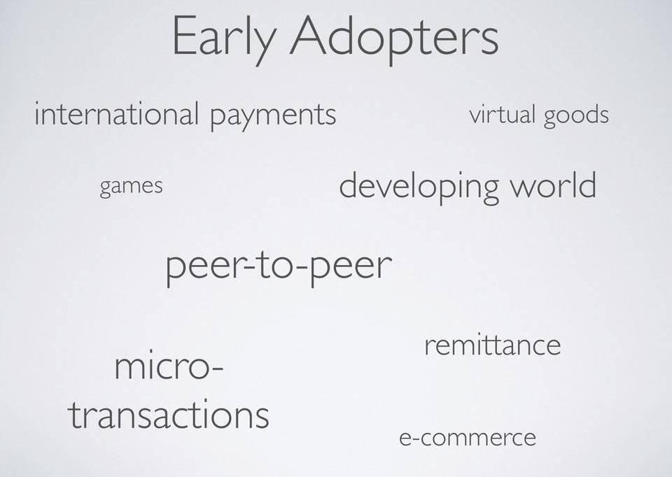 早期采用者可能会在乎的关键词:国际化支付、虚拟物品、游戏、发展中国家、点对点、微交易、汇款、电子商务。没想到Coinbase这么早就意识到并将比特币定位于帮助「发展中国家」接入银行系统的愿景。