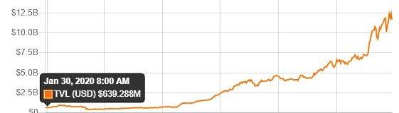 图202020年DeFi去中心化交易所智能合约托管资金(TVL)增长曲线