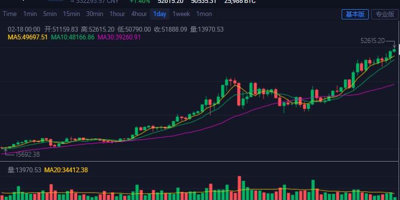 财联社讯,春节期间,全球各类资产均大幅上涨,比特币价格势如破竹,价格站上52000美元再创新高,2月累计涨幅高达60%,总市值超越腾讯。
