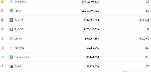 DeFi项目锁定资产前十排名及锁仓量,数据来源:Debank