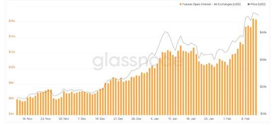 目前,未平仓合约处于历史高位,总价值刚刚超过160亿美元。自1月1日以来增加了60%。